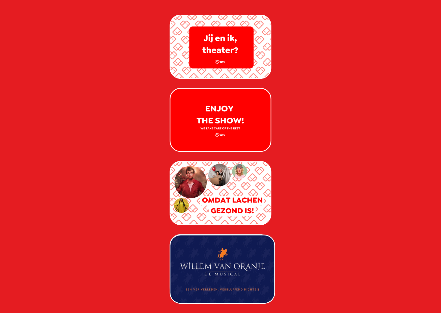 Verras een theaterliefhebber met de Nationale Theaterkassa Cadeaukaart! Kies uit verschillende ontwerpen en geef een cadeau dat altijd in de smaak valt.